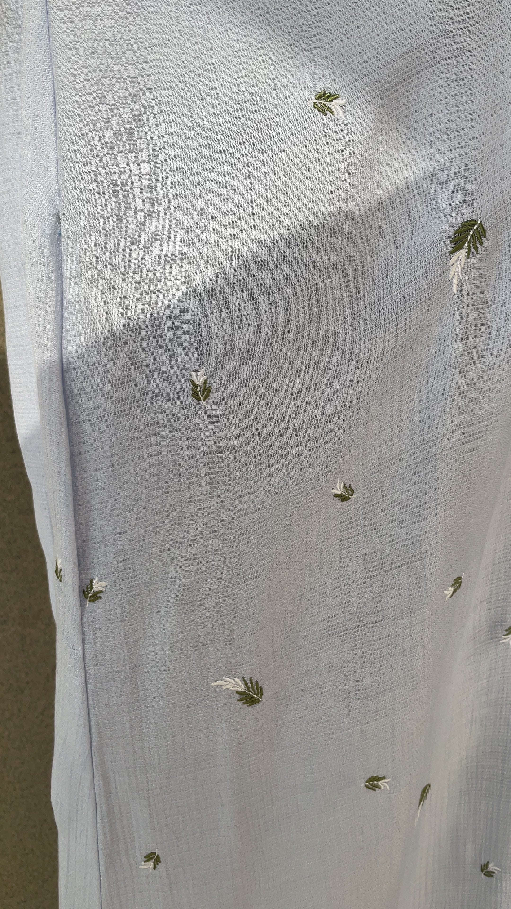 Design: Features delicate embroidery scattered across the fabric, adding a subtle yet elegant touch.